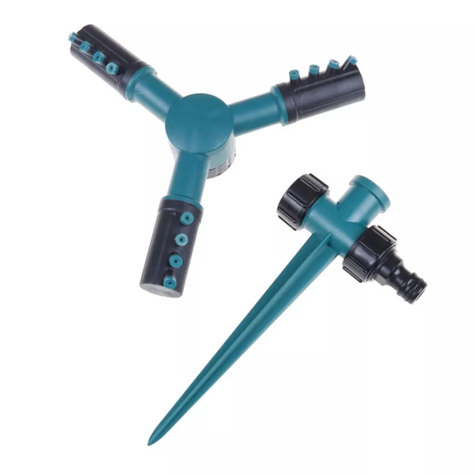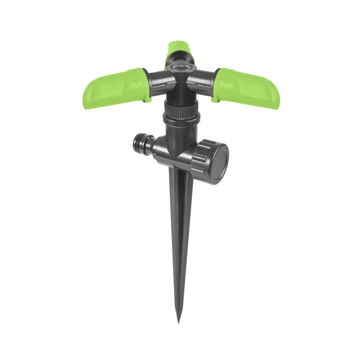 - three-arm rotating sprinkler with a spike base